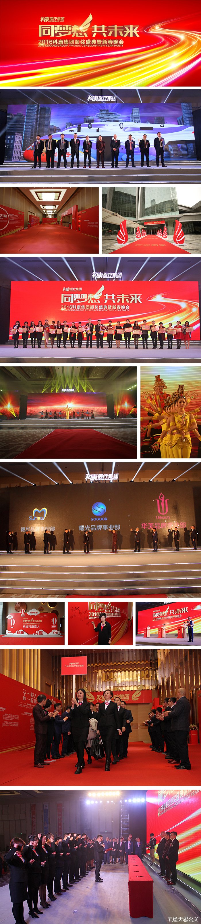 2016年1月31日,由豐揚天思傾力打造的“同夢想,共未來”——2016科康集團頒獎盛典暨新春晚會在廣州南豐朗豪酒店隆重舉行。來自全國各地的科康家人、集團高管、商業(yè)精英人士近一千兩百人匯聚盛典現(xiàn)場,共同見證盛會的舉行。
