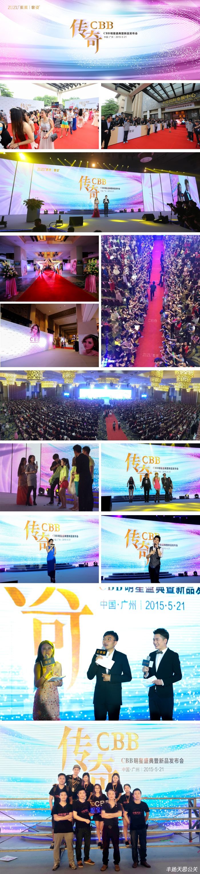 2015年5月21日,由豐揚天思全程策劃及統籌執行的“傳奇CBB”明星盛典暨新品發布會在廣州長隆國際會展中心隆重舉行。現場恢宏壯觀、放眼望去全場逾3000名微商代理商俱是美女。或高冷或冷艷或熱情,氣質迥異的美女們齊聚一堂,不愧于微商第一美女團隊名頭。