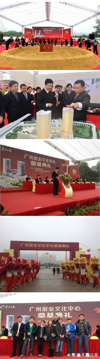 國際領(lǐng)先的全媒體發(fā)展平臺、彰顯嶺南特色的文化新地標(biāo)——廣州日報(bào)報(bào)業(yè)文化中心今天舉行隆重的奠基典禮。廣州報(bào)業(yè)文化中心是廣州市重點(diǎn)項(xiàng)目,地處琶洲會展總部功能區(qū)的西北濱水地帶,通過國際設(shè)計(jì)競賽,最后確定德國gmp建筑設(shè)計(jì)有限公司和廣州市設(shè)計(jì)院聯(lián)合體的方案為實(shí)施方案,項(xiàng)目總投資約17.6億元人民幣(含土地成本),預(yù)計(jì)在2015年投入使用,出席的嘉賓有廣州市委書記萬慶良同志,廣州市長陳建華同志,以及市、區(qū)、報(bào)業(yè)領(lǐng)導(dǎo)等。——廣州豐揚(yáng)天思活動(dòng)策劃公司事業(yè)一部策劃執(zhí)行