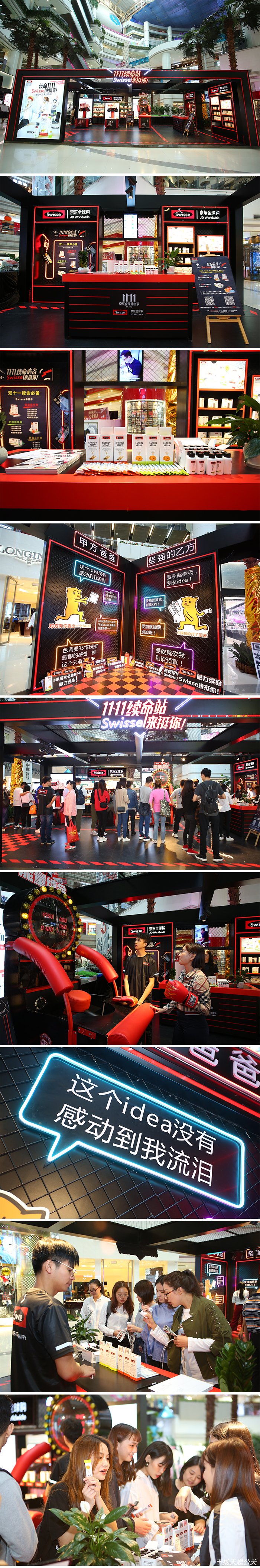 10月16日到10月17日,由廣東豐揚(yáng)天思文化傳播有限公司承辦的為期兩天的“雙11續(xù)命站,Swisse來挺你”活動(dòng)在廣州正佳廣場、杭州城西銀泰展開。“續(xù)命站”設(shè)計(jì)在人群聚集的商圈周邊,通過打造這個(gè)發(fā)泄情緒的通道,讓電商廣告人群在備戰(zhàn)雙十一高強(qiáng)度工作期間,可以忙里偷閑盡情釋放自己的壓力,以此喚起他們對健康的關(guān)注。